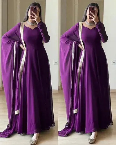 Attractive Georgette Gowns With Dupatta Lace Work (Purple)